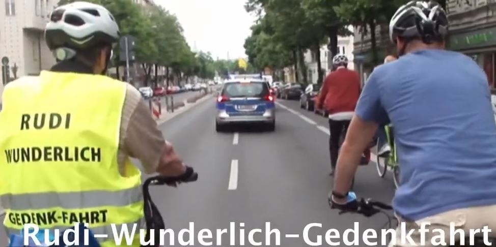 Mit einer jährlichen Gedenkfahrt auf dem Fahrrad erinnert die Initiative KZ-Außenlager Lichterfelde e.V. (ikz-lichterfelde.de) an die geglückte Flucht des KZ-Häftlings Rudi Wunderlich am 10. Juni 1944. Im Monteuranzug nahm er das Fahrrad eines SS-Mannes und fuhr unerkannt vom Wirtschaftsverwaltungshauptamt der SS bis zu seinem Versteck in der Schliemannstraße 9 im Prenzlauer Berg quer durch Berlin. Wir folgen seinen Spuren.